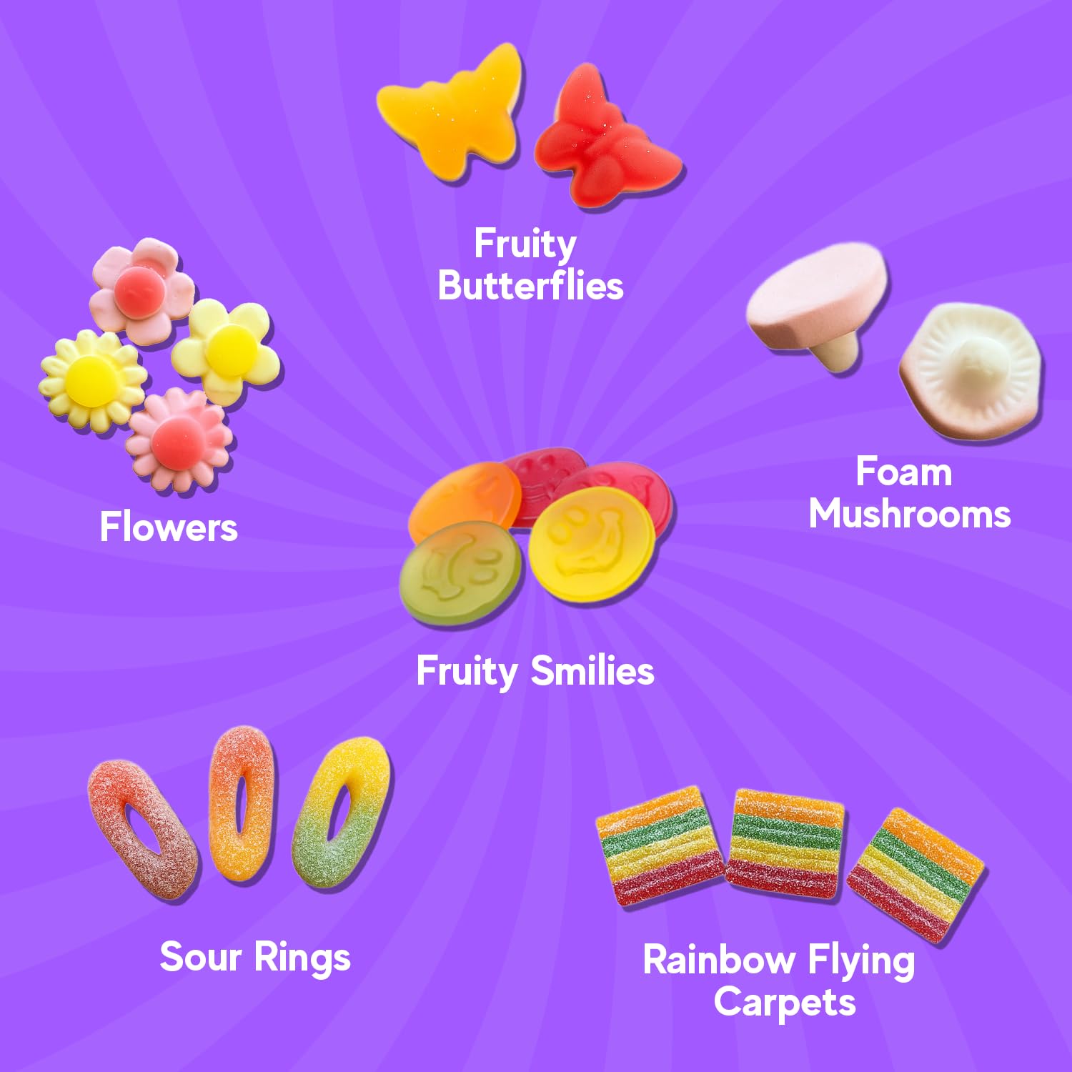 This is a tasty selection of Swedish candy. It comes in a resealable bag.The candies offer a variety of flavors and especially textures, ranging from the familiar chewy gummy rainbow strips to the lighter, “foamy” texture of the mushroom-shaped candies.Each candy is fresh and delicious, and there are a variety of different fruity flavors. They are slightly less sweet than typical American candies. Very addictive!